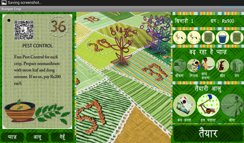 Bumper crop is an android game I've just started working on with Dr Misha Myers as part of the Play to Grow project: "exploring and testing the use of computer games as a method of storytelling and learning to engage urban users in complexities of rural development, agricultural practices and issues facing farmers in India."