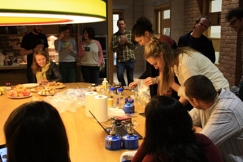 In the evening we held the workshop at the new FoAM studio in Jubilee Warehouse. We had about 25 people around the huge round table, again representing a broad mix of backgrounds. The plan was to make images made from yeast (yeastograms), fusing art and science with the aim of exposing everyone to something new. Yeastograms were developed by Pavillon_35 and a protocol is openly available.