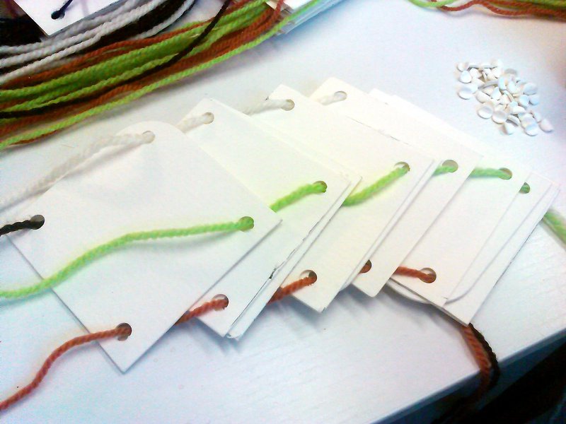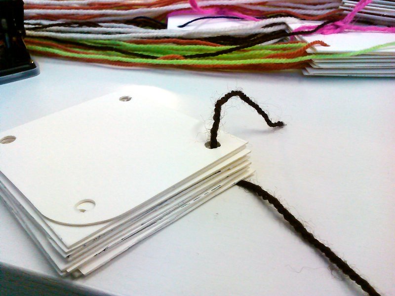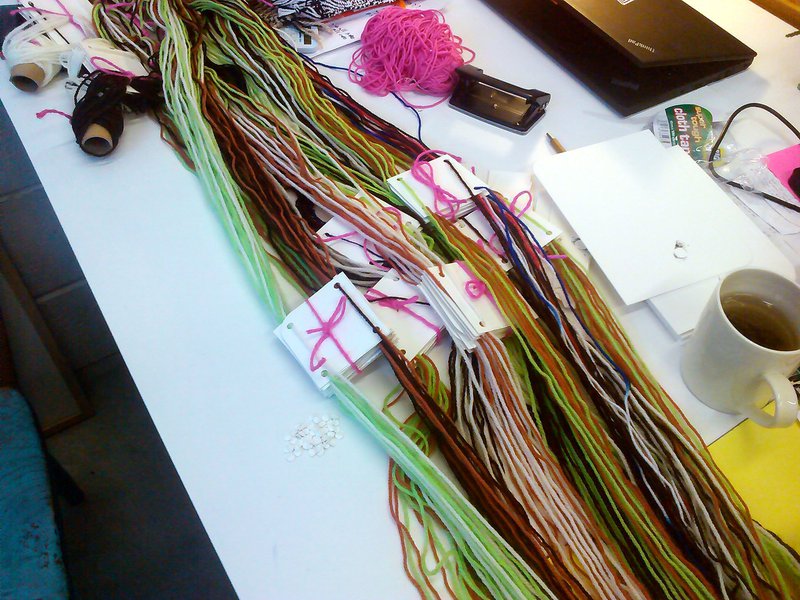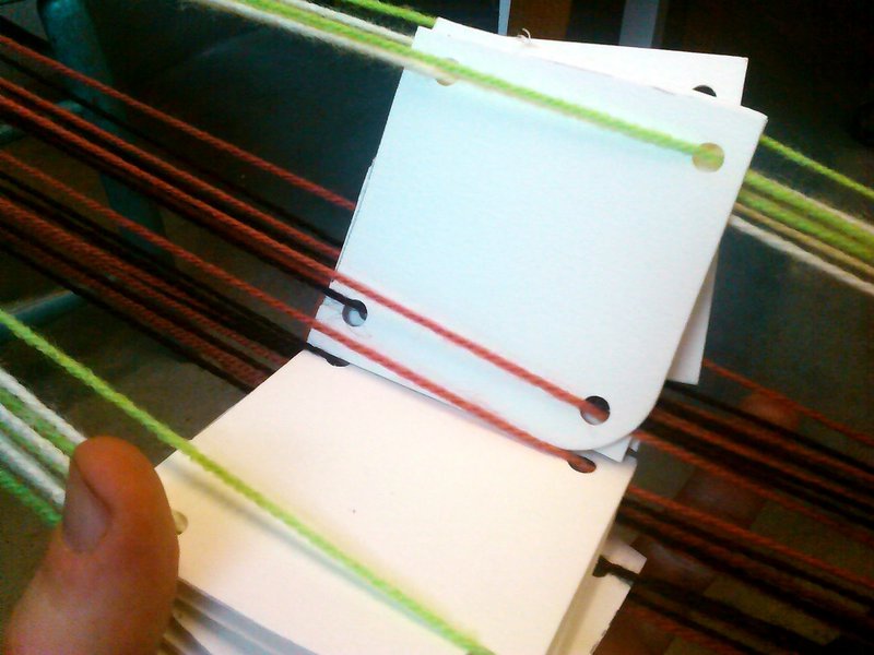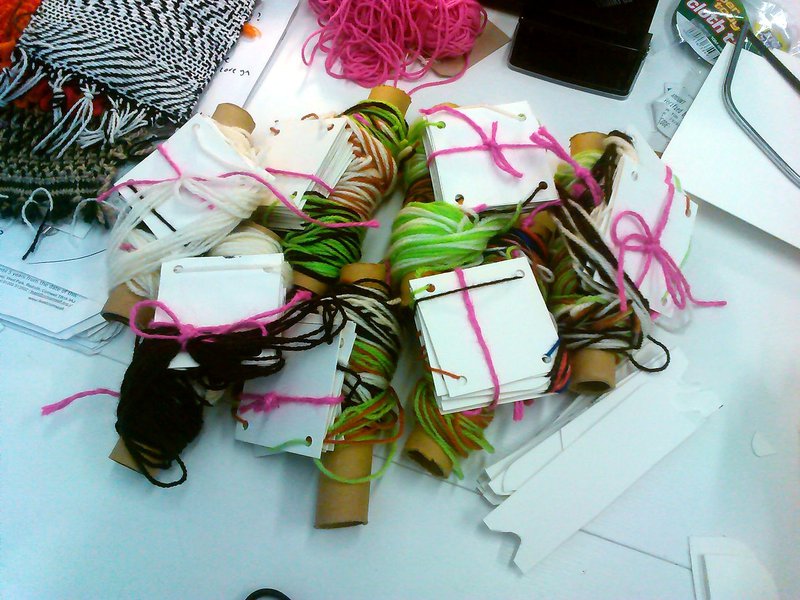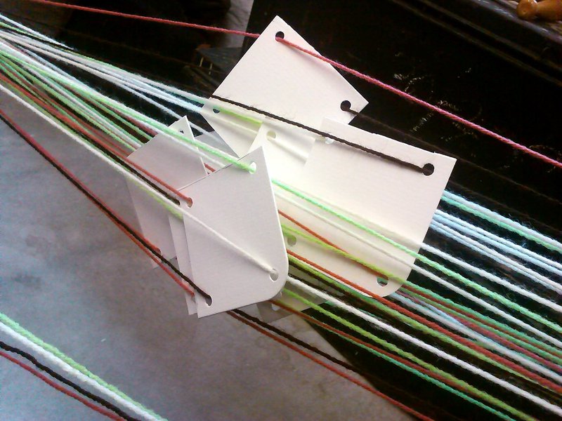 I've learned to warp tablets very much by trial and error, so I expect there are many improvements possible (please let me know), but as I had to warp a load of tablet looms for the weavecoding workshop in Düsseldorf last week, I thought I'd document the process here.