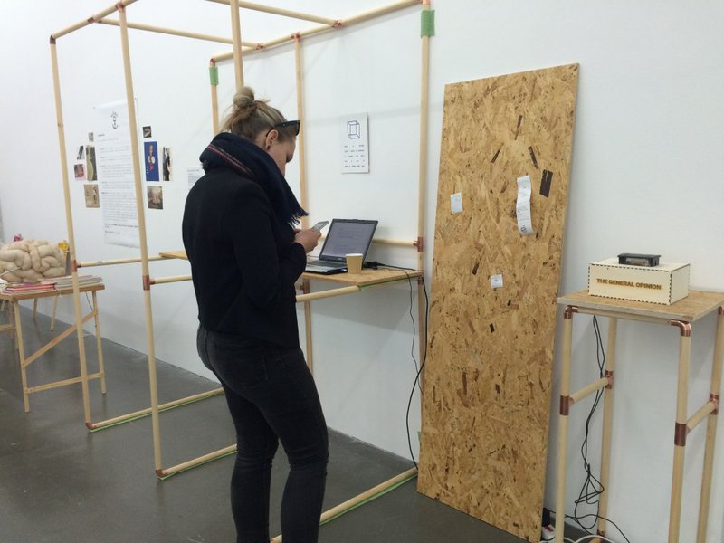 The booths. Henry of Medium Rare has a flawless eye for design. As well as designing the website, he constructed our polling booths using dowling and copper plumbing joints (fun trips to B&Q, looking important and waltzing around with 8ft lengths of wood). Although we are promoting openness, we are also promoting focused responses, and enjoyed playing with the archaic format of a polling booth, and by extension, an election. We decided that a frame would nod to our form sufficiently whilst not forming the physical barriers so much.