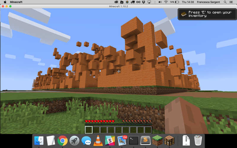 After rendering voxel data in Minecraft Pi, the next logical (and exciting) step was to export the blocks as a 3D file ready for 3D printing. Jo is the master of all things 3D and tangible, so I have been very excited to send this off to her – after a day of dallying around, we are definitely closer to that goal. Still new(ish) to thinking in 3D, I found Dave’s wisdom invaluable in this transition, so thank you.