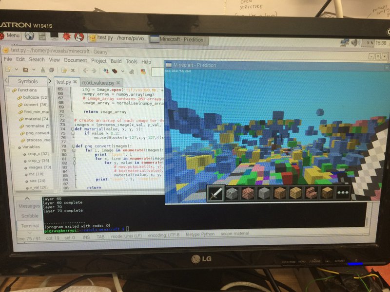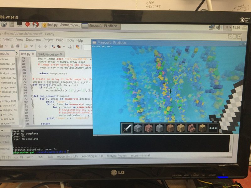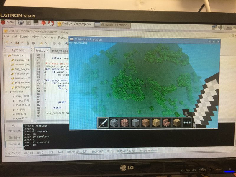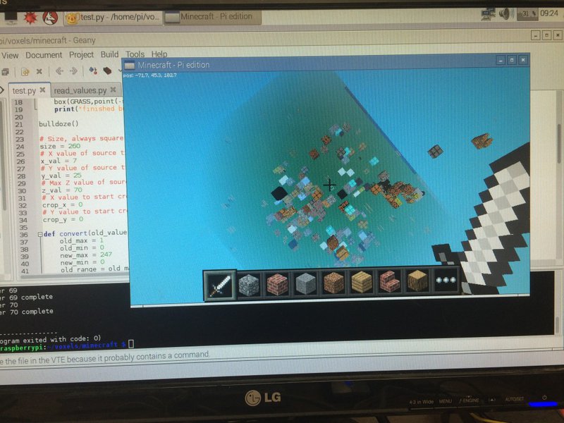It made total and complete sense to use the data to build areas in Minecraft on the Raspberry Pi. Minecraft Pi has a pretty stellar Python API – I’d encountered it during workshops with teenagers, but never sat down to explore it properly. The majority of the GeoTIFF data extraction for previous play used Python, so porting it to Minecraft wouldn’t be difficult. I was quite curious to see how far we could take this, and after testing, the intrigue has grown deeper, due to its limitations (which I tend to have found unearths a whole new category of investigation & option).