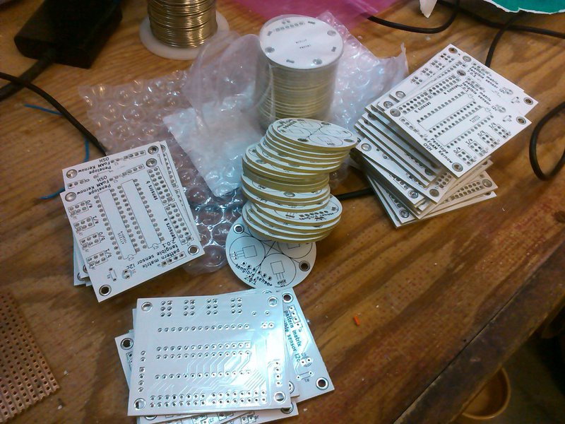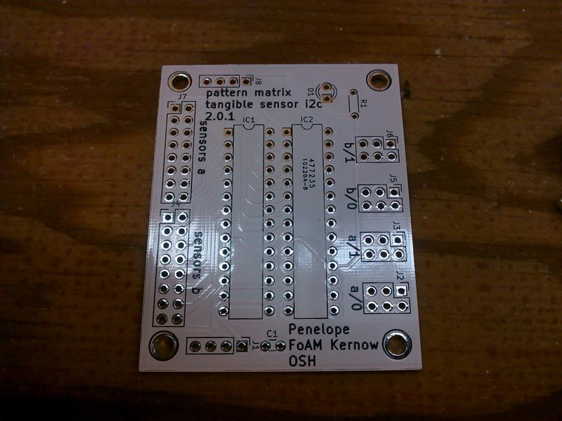 After triple checking the schematics and design files and ordering 80 PCBs (50 sensors and 30 i2c boards) there was an anxious wait for them to arrive and do some initial tests to find out if there were any mistakes. We now have enough boards to make two new pattern matrix devices, one 4X4 and one 5X5 - the plan is to evaluate the design and refine it for future builds.