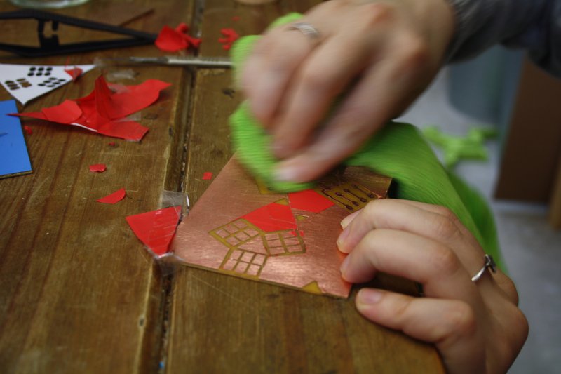 While we experiment with new fabrication techniques in order to shorten supply chains (with a philosophy of collapse in mind), electronics is problematic. Components can be salvaged and reclaimed but a particular problem is printed circuit board manufacture.