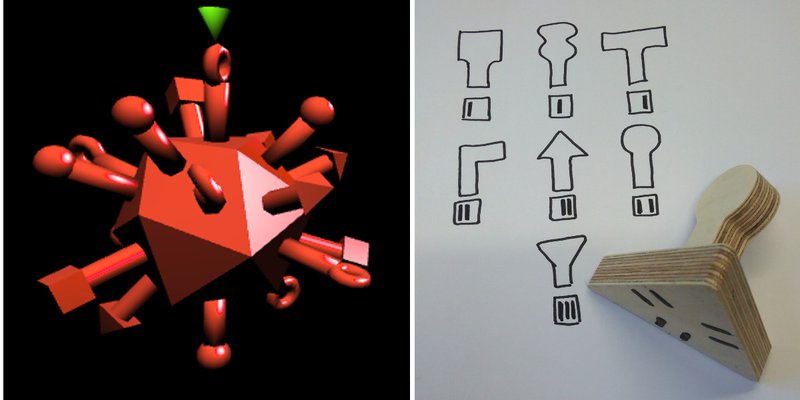 Either way, outsourcing this kind of fabrication sometimes doesn't make sense. For Viruscraft we need a finer understanding of the materials involved to design our tangible virus interface. We need to detect the 'shapes' of receptors attached to a physical virus capsid, and the first approach we want to try is using voltage detection of the kind used in things like the Makey Makey. If we give each virus receptor three bits of information we can represent seven different receptor shapes, which is plenty for our needs. We need some kind of connection point that can read this information - a printed circuit board with exposed conductive 'touch pads' embedded in the virus capsid seems a good way to proceed.