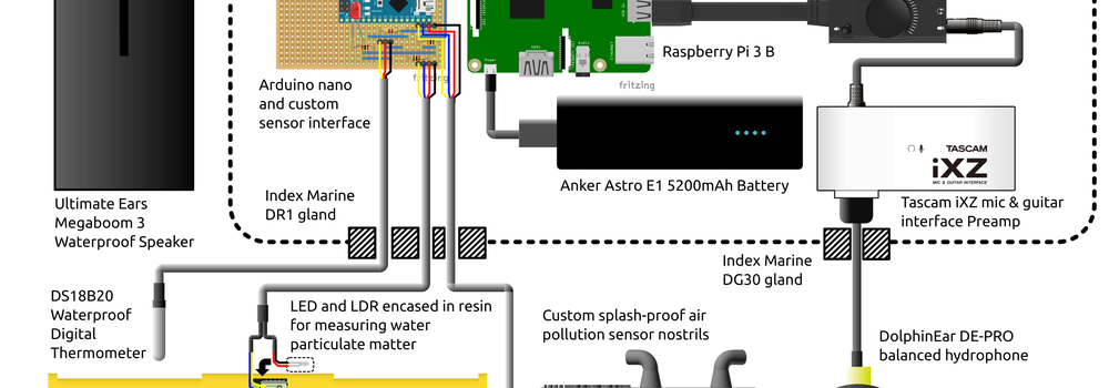 - We've designed and integrated two new pollution sensors, one to measure turbidity (cloudiness of the water) and one to measure air pollution above water (as you get from diesel boat engines etc.). These join the previous sensors for underwater temperature and underwater sound/noise pollution.