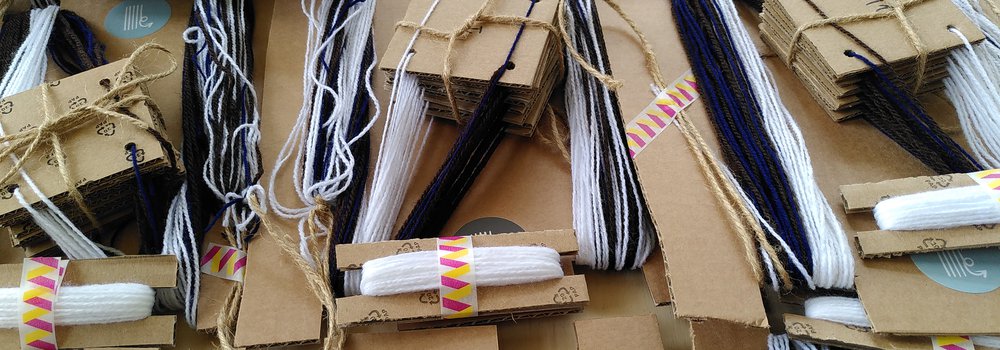 Tablet weaving is a perfect way to explore how people have been manipulating digital information for thousands of years. We spent a few days mass producing 25 sets of warps, tablets and shuttles out of cardboard and yarn and dispatched them to Barcelona (via Lizzy Wilson) and Sheffield as part of a remote/hybrid/three location workshop on algorithmic pattern for the on_the_fly_collect(_) festival.