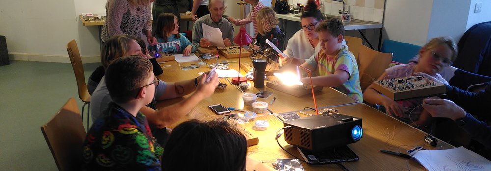 All the information on the project, including how to build your own Cardboard Crystal Synthesiser are online here (all open source/open hardware). Let us know if you give it a go. Thank you to Flamm Cornwall for supporting this project and Cornwall Neighbourhoods for Change for allowing us to take over your space and providing an amazing group to try all this out on.