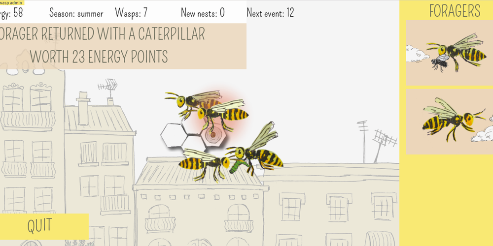 Together with Seirian Sumner at University College London, we made an open source game to allow people to build their own wasp society. Players can toy with the limits of biology and test the resilience of their wasp social structures when environmental catastrophes hit.