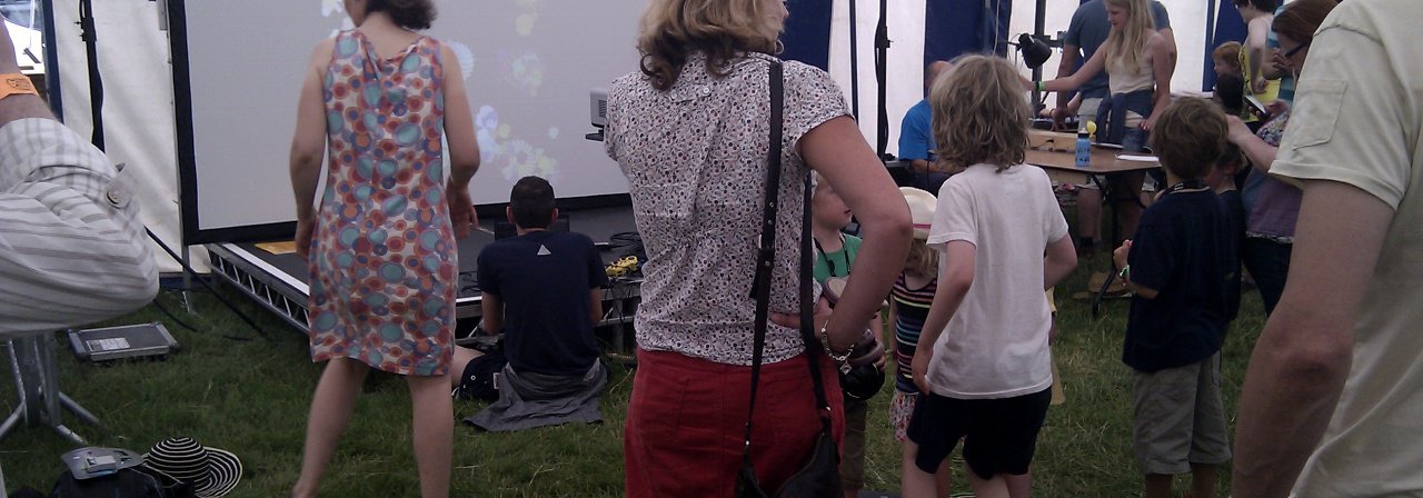We have also been taking Scratch Programming to festivals, taking part in the Machines Tent at the Deershed Festival with Alex McLean and Martyn Eggleton - where we taught games programming on a specially built quad Raspberry Pi cube in the mornings and 'helped' with networked Minecraft gaming in the afternoons during the three day festival.