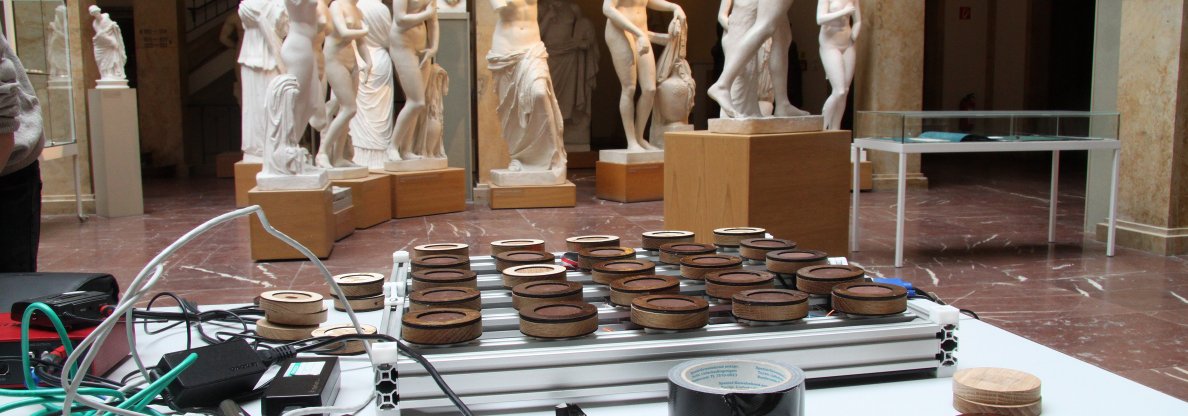 First exhibited as part of Ellen Harlizius-Klück's Textile Matrix exhibition in Munich's Museum für Abgüsse Klassischer Bildwerke, the pattern matrix provided a way for visitors to experiment with different weaving drafts (the notation that weavers use) and see how they are woven into fabric on a warp weighted loom - a technology that dates back to the Greek civilisation of antiquity with origins in neolithic times. Both weave structure and colour sequences can be controlled separately.